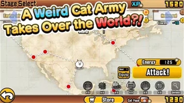 2、关卡“邪恶帝王之猫弹”:部分玩家可能在此受阻;推荐使用全部基础单位进行挑战。