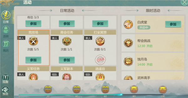 竞技场活跃奖励为10点,角色等级达到25级后即可参与;在此可充分展现个人实力。
