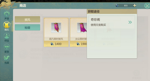 魂石商店可购买披风与秘籍等;头衔升级时会赠送七日限时披风,初期无需额外消耗魂石;部分秘籍可通过支线任务获取,注意避免重复购买。
