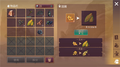 3、通过篝火烹煮浆果获取水分,种植玉米并煮成玉米粥以应对饥饿。