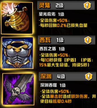 提升装备等级可获得额外属性,并直接生效于全体英雄;