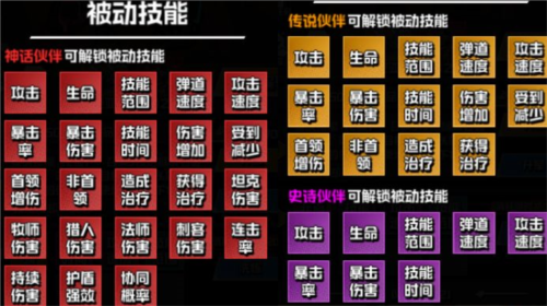 传说伙伴可解锁红色被动技能,神话伙伴可解锁黄色被动技能;