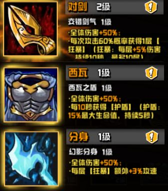 次级技能可选择攻击、技能时间、连击率与护盾强效。