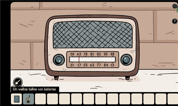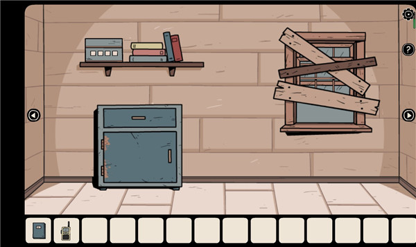 4、在白色门右侧的抽屉柜中找到两节电池;先将电池装入对讲机,调到频道4收听播放的音乐;随后调整收音机频道至对应的音乐频道(需记住频道数字,不同音乐对应不同频道)。注:组合物品时,选择道具后点击Grab再选择需组合的另一道具;收音机右下抽屉内还有一个密码符号。