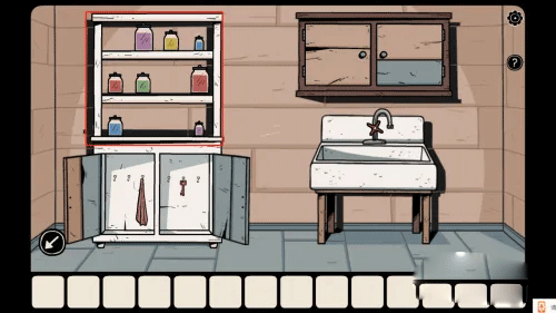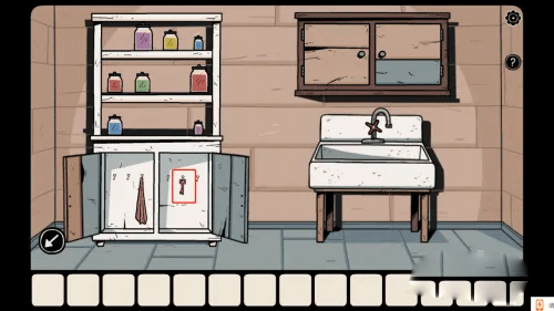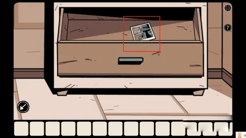 1、故事始于三位少年闯入女巫之家,女主角被困后开启逃生之旅。首先从抽屉取得一张照片,照片中女巫背后的架子藏有重要提示。