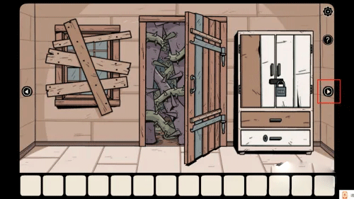 第二步,向右侧切换两次场景进入第二个房间;点击房门进入。