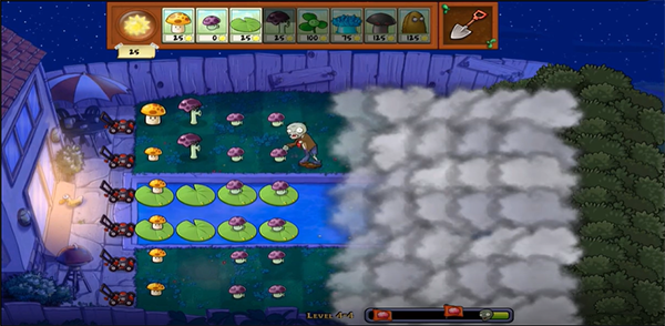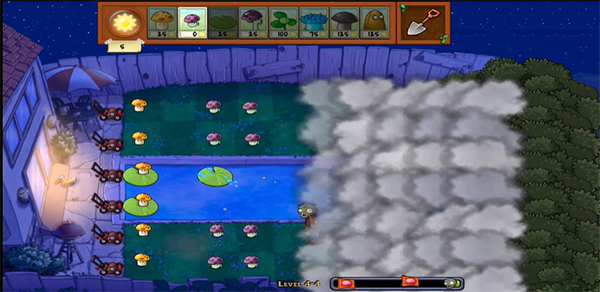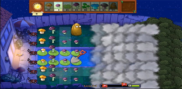 这个版本有一层云雾遮蔽战场,无法提前看到僵尸的进攻路线,增加了游戏的紧张感。