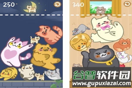 1、画面清新可爱,以猫咪合并为主题,让玩家能与各类萌猫互动,在轻松的氛围中享受游戏时光;