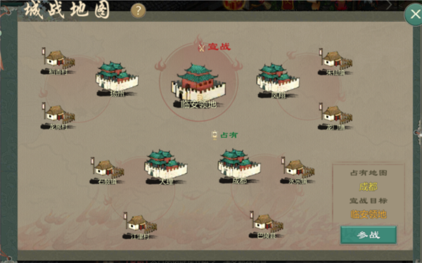 1. 攻城战以帮会为单位参与,宣战后进入对应城池争夺。每个帮会仅能占领一块领地;