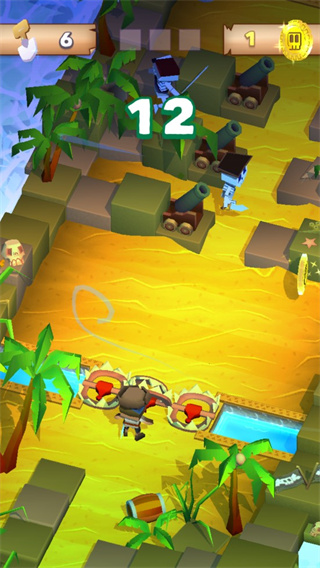 游戏采用点触操控,轻点屏幕使海盗前进,左右滑动可变换方向;注意不可后退,否则会导致失败。点击速度越快,人物移动也越快,这对及时通过陷阱至关重要。玩法考验玩家的即时反应与时机把握,操作简单但想顺利通关仍需练习。