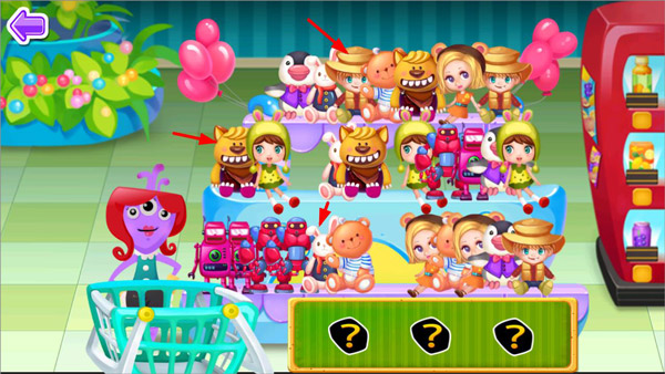 3、需要帮助顾客挑选所需商品,例如他想买玩偶,就按照要求从货架上找到并放入购物篮;