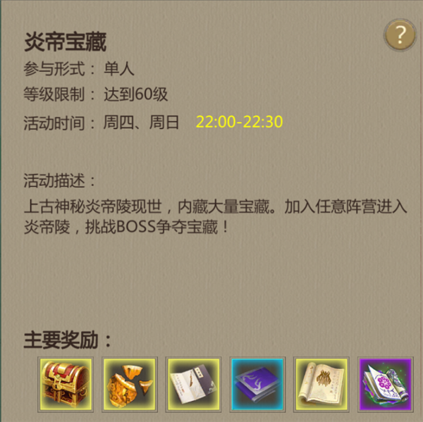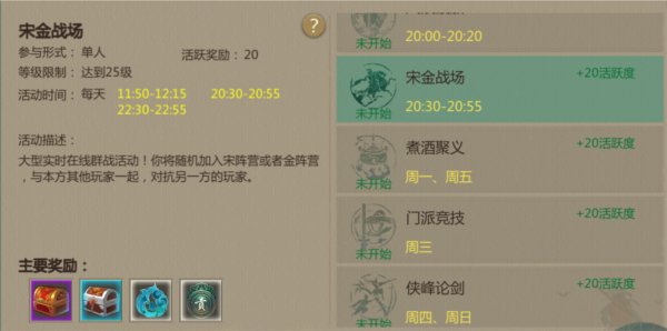 活动奖励:黄金宝箱·宋金、白银宝箱·宋金、大量经验、帮贡