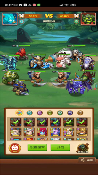 19、上场英雄站位固定为前、中、后排,同排英雄位置系统自动调整;