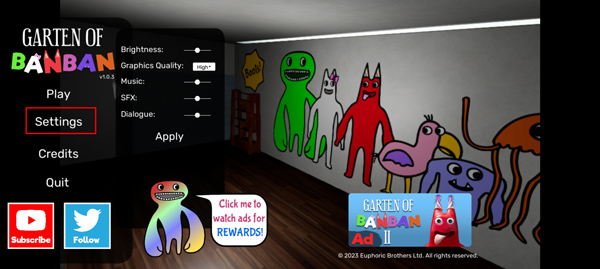 1、启动游戏后,首先可点击设置选项,调整画面质量与声音效果。