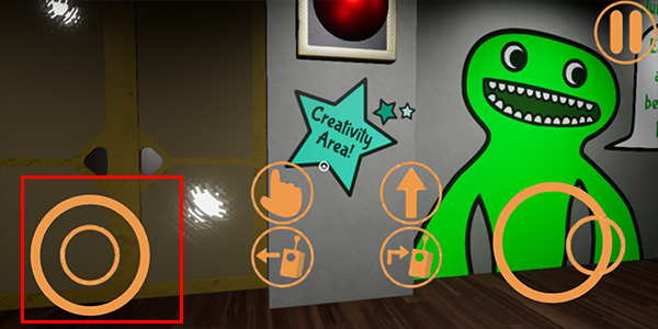 4、游戏采用横屏操作,左侧虚拟轮盘控制移动方向,右侧点击则进行互动。