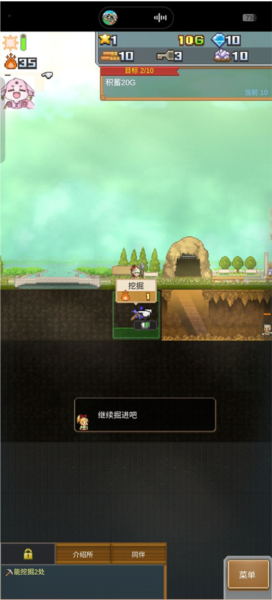 3、返回主界面后点击挖掘功能,开始拓展属于你的地下洞窟。