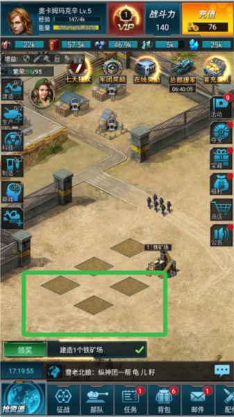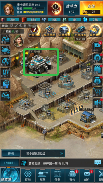 1、跟随任务指引快速发展基地,完成目标可领取丰厚奖励。