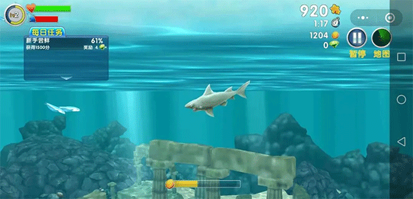 此时需迅速上浮。当鲨鱼足够强大后,便能自由探索地图的每一个角落。