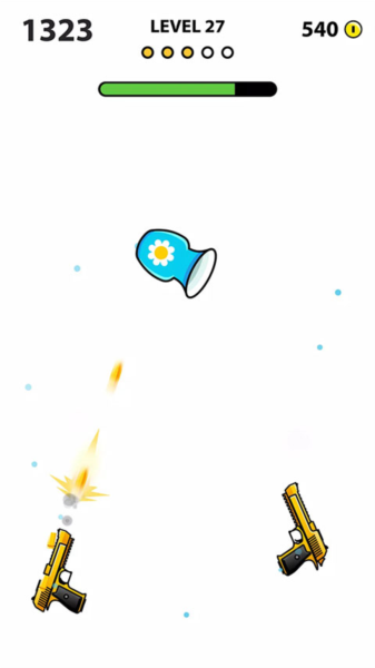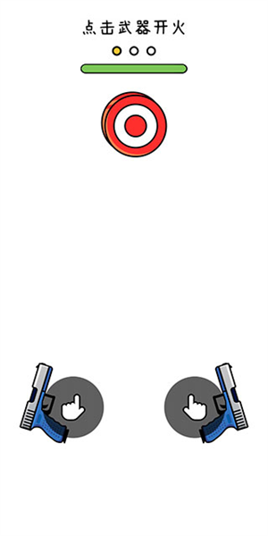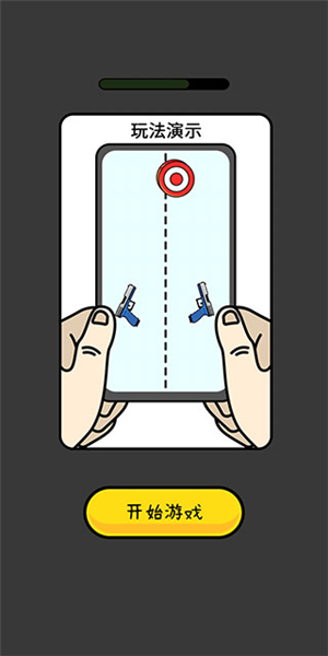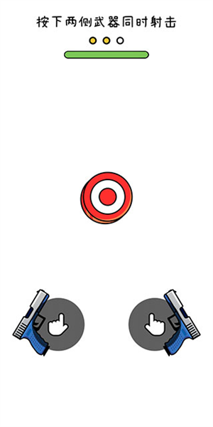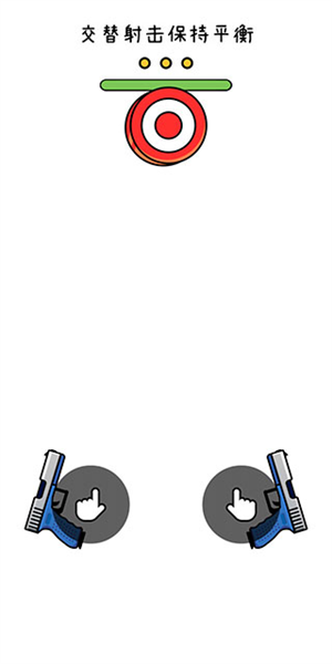 1、游戏操作十分直观,屏幕左右两侧各配备一支枪,目标会沿中央虚线轨迹从下向上移动。