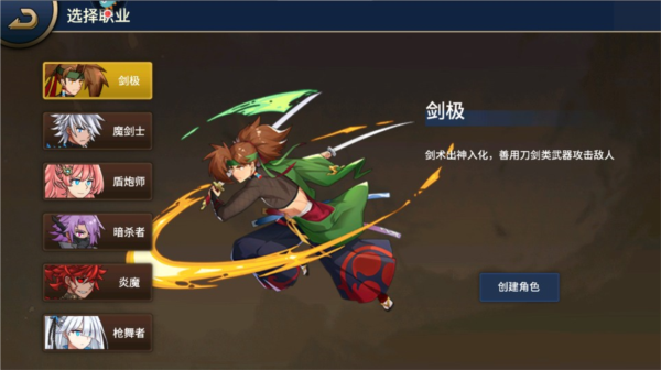 2、从六大职业中选择一个,点击创建角色。