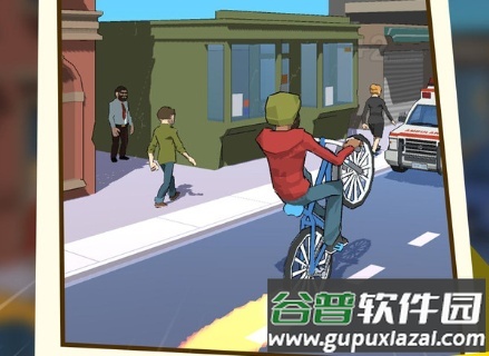1、玩家通过点击维持自行车平衡,在赛道上不断前进,并巧妙躲开各类障碍物;