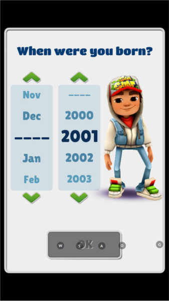 1、进入游戏后先选择出生日期,系统会根据年龄推荐难度适宜的游戏模式。