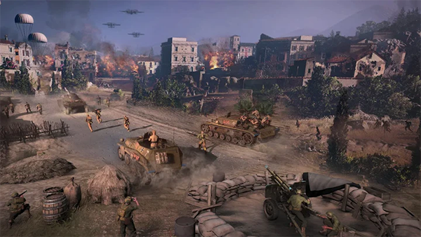 - 战场地形效果逼真,从西欧丛林、北非沙漠到东线雪原,均被细致还原并具备独特的地形影响;玩家亦可指挥海军舰队参与海战,感受巨舰重炮的威力;