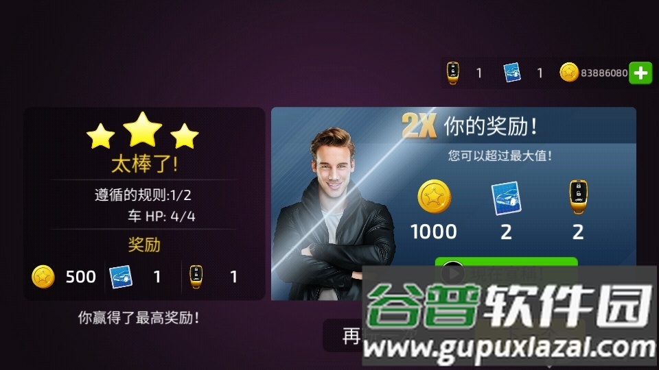 1.解锁新车辆并在行驶中应对各种考验,操控方向盘灵活避开障碍;