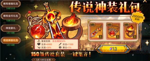 十二元兑换一件橙色套装;游戏首日副本即有概率掉落红色装备,且属性更优,其他活动也会赠送自选红装,装备更新换代较快。