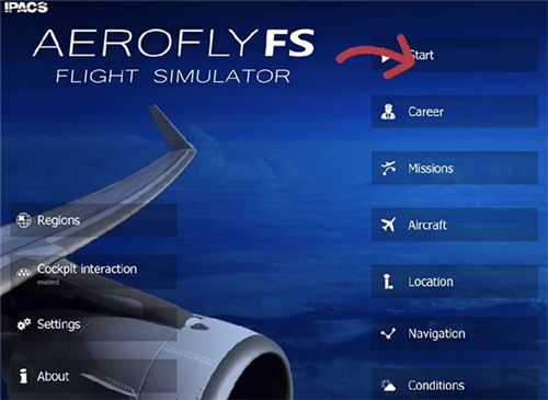 完成所有调整后,点击主界面左上角的开始按钮,即可正式进入飞行体验。