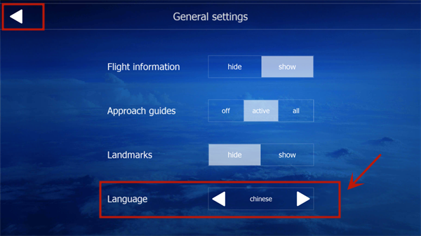 4、找到语言选项,点击三角形切换至中文,完成后点击左侧返回键。