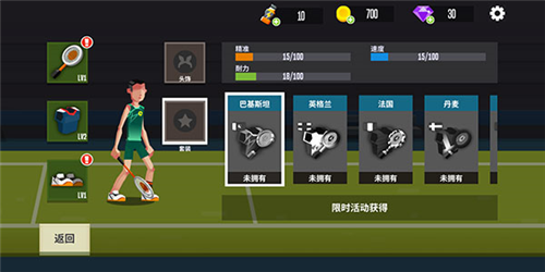 “耐力”会在移动和击球过程中消耗,耐力耗尽则无法有效回球;