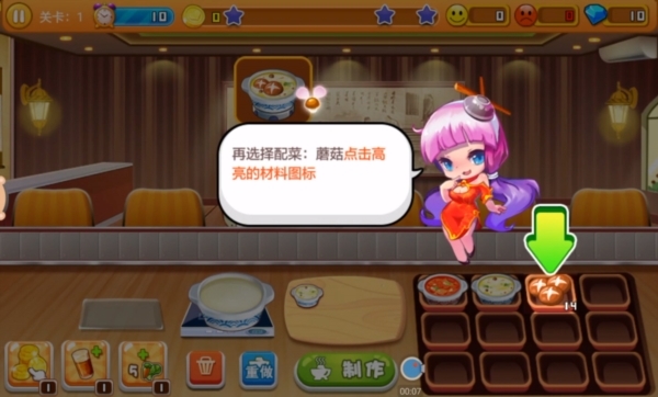 2、游戏开始后,顾客会出现,按照其头顶显示的需求制作对应火锅即可。