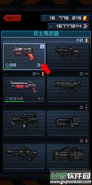 4、进入武器切换界面后,如果材料足够,可以对武器进行升级强化;