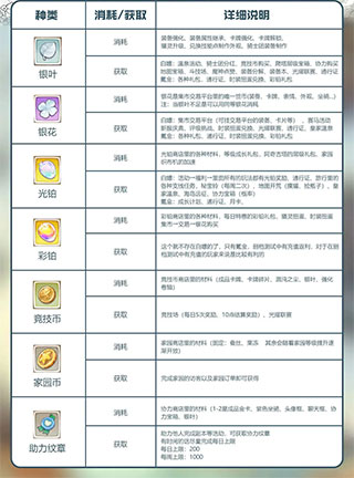 各类基础货币的消耗途径与获取方式已整理成表格,帮助玩家快速理解货币用途,优化游戏资源管理。