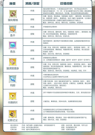 游戏内材料种类繁多,为方便玩家快速上手,已将主要材料的作用与获取途径汇总说明。