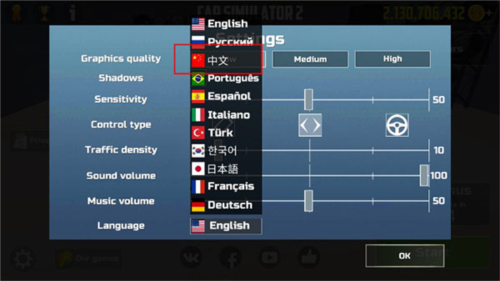 3、在弹出的语言列表中,选择“中文”选项,然后点击右下角的“ok”按钮进行确认。
