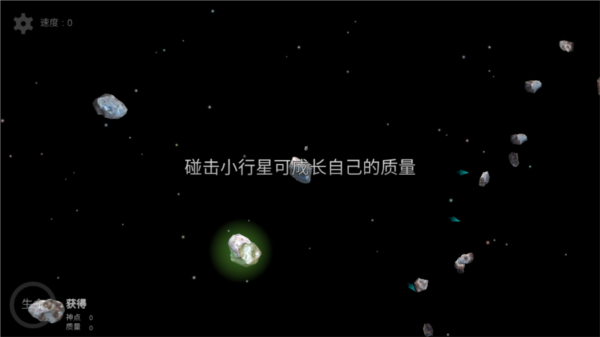 1、启动游戏后点击开始,你将操控一颗小行星进入宇宙;