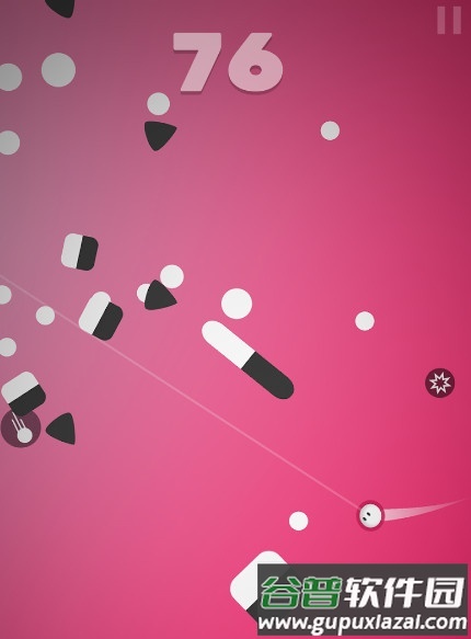 围绕中心摆动前进,小心避开黑色物体,收集强化道具并体验畅快破坏感,同时不断突破自己的得分极限。