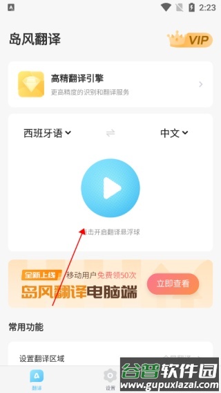 1. 打开应用后,首先点击首页的翻译悬浮球按钮。