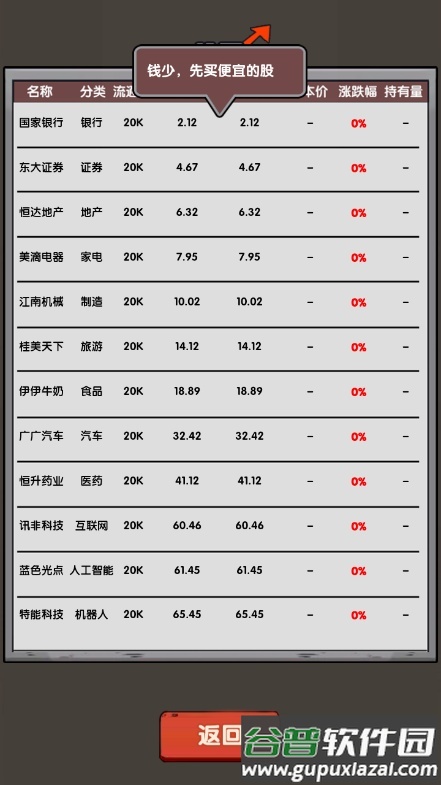4、游戏初期你只是一名普通股民,从零起步,努力赚钱养家。