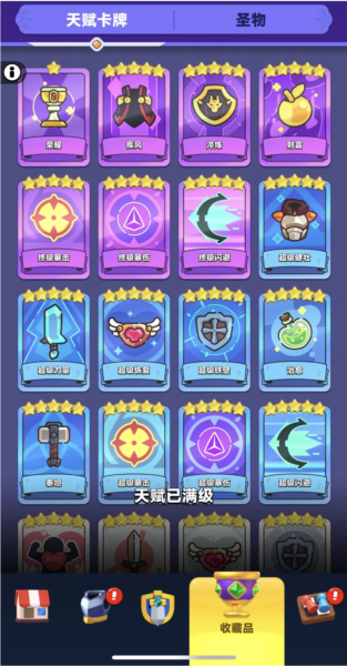 2、天赋系统中,除首个“荣耀”天赋外,其余最高可升至五星。