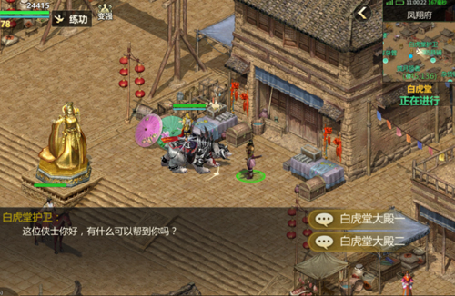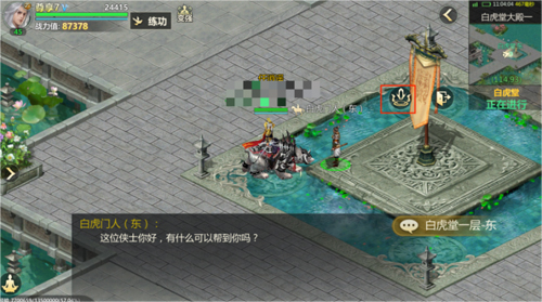 进入准备区域后,可点击界面提示按钮寻路至门人处,对话后进入白虎堂一层。