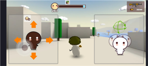 2、游戏采用左右分屏触控操作,左侧控制角色移动,右侧控制视角瞄准,射击则由系统自动完成。