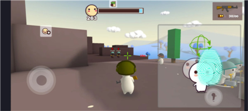 5、点击指纹图标位置,长按并控制好方向,枪支会自动向敌人射击。