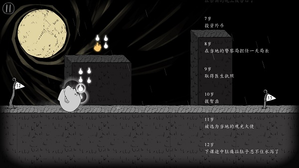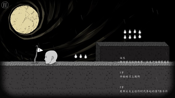 游戏进度以岁数计算,右侧会随着人头前进同步更新人物生平。部分玩家认为这或许更像是开发者想传递的一种无奈:“生命无法对抗,面对诸多起伏,也只能通过喊叫来宣泄压力”。这个理解比较主观,对于这款偏向消磨时间的游戏,不必思考过深,不如在诡异又矛盾的画风中寻找更多乐趣。