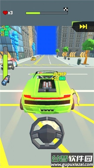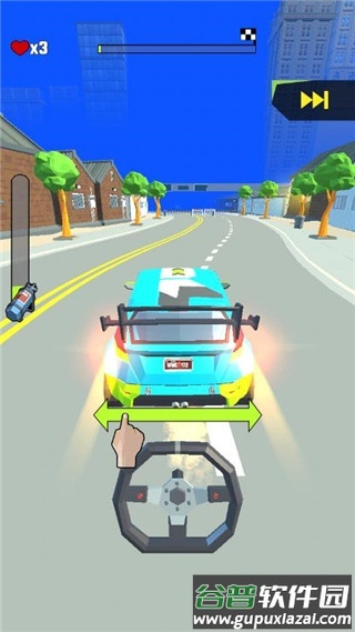 1、画面与操作:游戏采用卡通风格画面,赛道设计富有创意;操作简单直观,玩家使用虚拟摇杆控制赛车左右移动以躲避障碍。