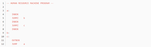程序需指示工人从INBOX取出每件物品,放入OUTBOX。