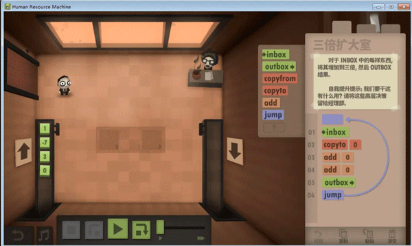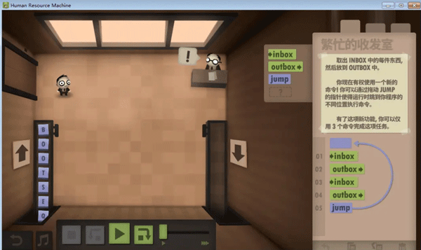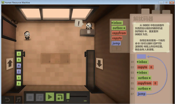 人力资源机器是一款模拟编程的解谜游戏,玩家通过拖放指令控制角色完成任务,逐步提升逻辑思维能力。游戏采用轻松幽默的画面风格,将编程概念转化为直观操作,即使没有编程基础也能快速上手。每一关都设计成一个小挑战,引导玩家理解程序流程与问题解决思路,在趣味中培养计算思维。