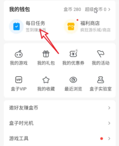1) 获得零用钱:完成指定任务赢取盒币;每日签到可得盒币,连续七天签到奖励更多;